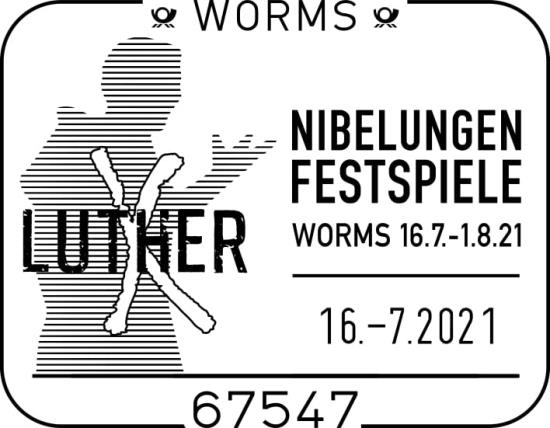 Die Nibelungen-Festspiele Worms präsentieren am Tag der Premiere "Luther", dem 16. Juli 2021, Briefmarken und Sonderstempel in Zusammenarbeit mit dem Briefmarkensammlerverein Worms und der Deutschen Post.