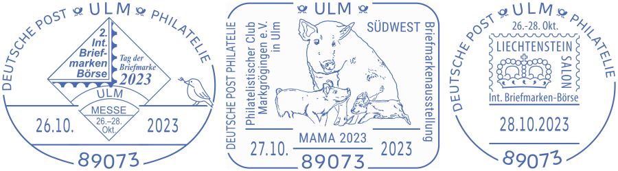 Sonderstempel zur Briefmarkenausstellung "MAMA 2023" in Verbindung mit der Ausstellung "Die größte Sauerei in Ulm". |