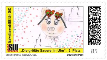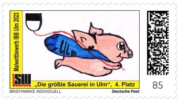 An den Ulmer Grundschulen (2. bis 4. Klassen) organisierte der Landesverband Südwest einen Malwettbewerb zum Thema der Schweine-Briefmarkenausstellung "Die größte Sauerei in Ulm". Die fünf besten Einreichungen wurden auf der Vorstandssitzung des Landesverbandes am 14.10.2023 ausgewählt.