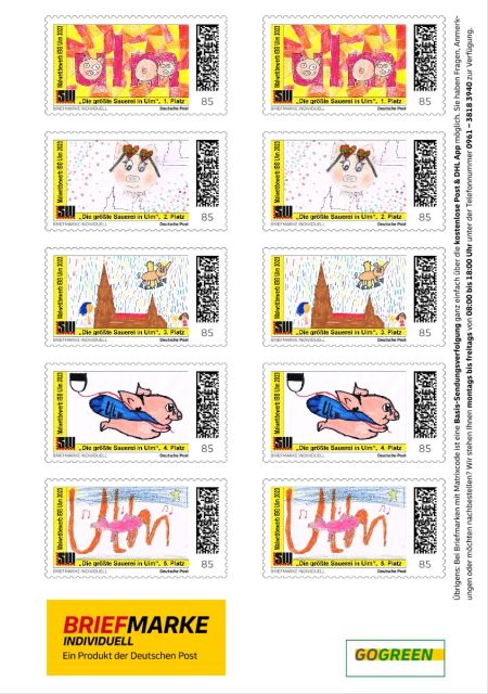 Restmenge verfügbar: Der an den Ulmer Grundschulen durchgeführte Malwettbewerb zur Schweine-Briefmarkenausstellung "Die größte Sauerei in Ulm" war unbestritten ein großer Erfolg. Unvergessen sind die Eindrücke von der Preisverleihung auf der Internationalen Briefmarkenbörse (IBB) vom 27. Oktober 2023. Senden Sie dazu einfach eine E-Mail mit Ihrer Anschrift, dem Hinweis "Bogen Malwettbewerb 2023" und der gewünschten Stückzahl an unseren Vorsitzenden, Herrn Dieter Schaile: Dieter.Schaile@Briefmarken-Suedwest.de Mit der Antwort-Mail erhalten Sie die Bankdaten. Nach Erhalt des Betrages, erfolgt der Versand innerhalb von ca. sieben Werktagen.