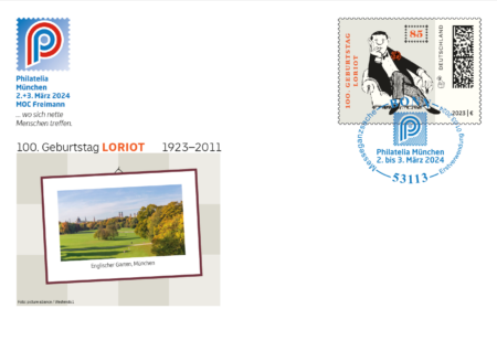 Mit dabei ist auch wieder die Deutsche Post, die eine Messe-Ganzsache herausgeben wird. Sie thematisiert den 100. Geburtstag von Loriot mit einer passenden Illustration und dem eingedruckten 85-Cent-Sonderpostwertzeichen „Zeichnung Loriot im Sessel“ vom 2. November 2023. Die ArGe Münchner Philatelistenvereine hat einen Sonderstempel zum 50. Jahrestag des Gewinns der Fußball-Weltmeisterschaft im Münchner Olympiastadion 1974 beantragt. Voraussichtlich wird die Deutsche Post insgesamt zwei Sonderstempel einsetzen.