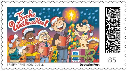 Welche Briefmarke für die Weihnachtspost nehmen? Die DPhJ-Weihnachtsmarke 2024! Bereits in den letzten Jahren hat die Deutsche Philatelisten-Jugend (DPhJ) Weihnachtspost-Schreiber mit einer speziellen Weihnachtsmarke unterstützt. Auch in diesem Jahr gibt es eine DPhJ-Weihnachtsmarke. Was ist absolutes Pflichtprogramm bevor es das Festessen und die Geschenke gibt? Natürlich das gemeinsame Singen von Weihnachtsliedern. Auch Fridolin und seine Freunde singen kräftig mit und werden dabei von Filu dirigiert. Sie möchten ebenfalls Ihrer Weihnachtspost den besonderen „Sound“ verleihen? Dann bestellen Sie schnell - jedoch spätestens bis zum 31.10.2024 - bei Heinz Wenz, Henneystr. 35a, 54293 Trier (Mail: wenz@dphj.de). Bestellungen sind auch auf unserer DPhJ-Homepage unter weihnachtsmarke.dphj.info möglich. Bei späterem Eingang der Bestellung kann leider keine rechtzeitige Lieferung garantiert werden. Die DPhJ-Weihnachtsmarke wird – natürlich in der aktuell gültigen Portostufe von 85 Cent – auf einem Bogen zu je 20 Marken hergestellt. Ein Muster ist im Dateianhang beigefügt. Ein Bogen kostet für Vorbesteller bei der Bestellung von