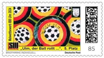 Passend zu den Marken bietet sich der Sonderstempel in Ulm zur Briefmarkenausstellung REMSMA 2024 mit den Fußballern an.