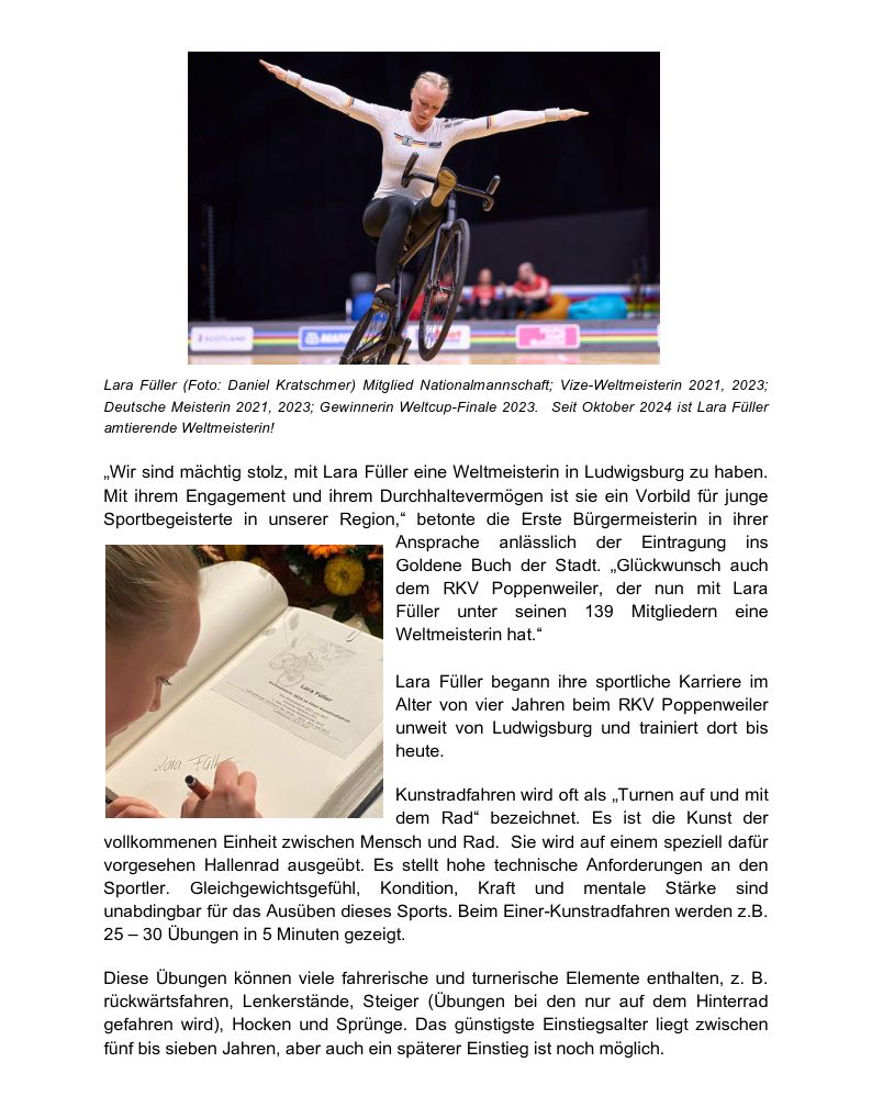 Lara Füller, die Weltmeisterin 2024 im Kunstradfahren vom