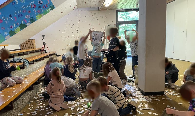 In der Aula der benachbarten Grundschule Hochberg regnete es Briefmarken. Viele Briefmarken.