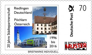 "Es hat sich einfach so ergeben", sagte Jürgen Berger, der sich seit Anfang des Jahres auch als Briefmarken-Designer versuchte. Erster konkreter Anlass zur Gestaltung einer Briefmarke war die Mitwirkung des Briefmarkensammlervereins bei der Wechselausstellung "Die Geschichte der Riedlinger Post". So entstand bereits im März dieses Jahres die Idee, die Postausstellung zum Thema für eine "Briefmarke individuell", wie die Deutsche Post AG ihr Produkt zum Selbstgestalten nennt, zu machen. Kaum war die Idee einer Briefmarke für die Postausstellung geboren, kamen neue Ideen hinzu. Zunächst war es das Museum und der Altertumsverein selbst, die als Briefmarke verewigt werden sollten. "Das wurde höchste Zeit, dass der Altertumsverein mit Briefmarken für sich werben kann.", sagt Winfried Aßfalg, seines Zeichens Vorsitzender eben jenes Vereins und Ehrenbürger der Stadt Riedlingen. Ein Kontakt mit der Stadtverwaltung Riedlingen brachte eine weitere Anregung: Die Stadt Riedlingen und ihre Partnerstadt Pöchlarn können auf 20 Jahre Städtepartnerschaft zurückschauen. Bürgermeister Franz Heisler aus Pöchlarn ist begeistert von der "schönen Jubiläumsmarke". Und "last but not least" gibt es heuer ja auch noch den Riedlinger Theatersommer. Die Anfrage bei Silvia Pöhlsen, seit November 2015 City-Managerin Riedlingens, fand ein positives Echo und so war Nummer vier der Briefmarke individuell geboren. Die Briefmarken haben einen Frankaturwert von 70 Cent und entsprechen dem Porto für einen Inlandsbrief der Deutschen Post. Sie sind gedruckt und werden ab Juni an drei Verkaufsstellen - an der Infothek im Rathaus, im Museum Schöne Stiege und beim City- und Marketingverein in der Haldenstraße - zu den üblichen Öffnungszeiten abgegeben. Dank des Sponsoring durch die Kreissparkasse Riedlingen, die Druckkosten und Mehrwertsteuer übernommen hat, werden die Briefmarken zum Einzelpreis von 1,- Euro, im 4er Set zu 3,50 Euro und im ganzen Bogen zu 20 Marken für 15,- Euro verkauft. "Das ist eine runde Sache", freut sich Bürgermeister Marcus Schaft über die zusätzliche Werbung für die Donaustadt. Vielleicht gibt es in naher Zukunft auch viele Briefempfänger, die sich über die kreativen und ansprechenden Riedlinger Motivmarken freuen. Zuletzt gab der Briefmarkensammlerverein 2012 zwei Motivmarken mit den Schmalspurbahnen Buchauer Bähnle und Öchsle heraus. Im Kaplaneihaus war für einen Tag ein Sonderpostamt eingerichtet worden, das einen Stempel mit dem Buchauer Bähnle führte. Im September soll auch im Museum ein Sonderpostamt eingerichtet werden. Ein passender Sonderstempel mit Postkutsche ist bereits in Arbeit. Internetseiten:  |