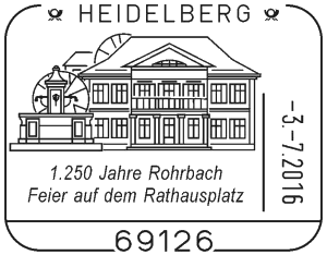 | Meldung vom 26.06.2016: |        Briefmarken-Sammlerverein Heidelberg und Rohrbach 1891 e.V.: 1.250 Jahre Rohrbach - Sonderstempel und Briefmarke zum Jubiläum!  |