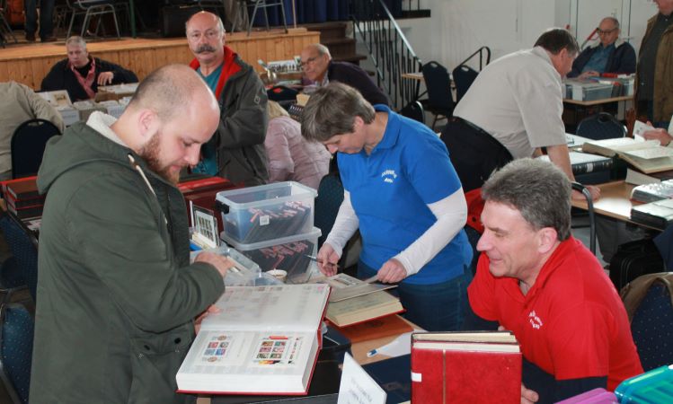 Die Atmosphäre mutet ein wenig nach Familientreffen an – viele kennen sich und wissen von einander, was das Gegenüber so sucht und haben sich entsprechend vorbereitet. Fleißig wurde mit Pinzetten bewaffnet die Marken aus den Alben gezogen, im Michel-Katalog nach dem Wert geschaut und in der Fehlliste die Marke als nun vorhanden gekennzeichnet. Hoch im Kurs standen in diesem Jahr neben Marken auch Briefe und Ansichtskarten – vornehmlich aus Rheinhessen und der Pfalz. Zufriedene Gesichter waren denn nicht nur bei den Verantwortlichen des Wormser Vereins, sondern auch bei den Sammlern zu sehen – auch der weitestete Weg hatte sich gelohnt. Und auch im nächsten Jahr wird das „Familientreffen“ wieder am Ostermontag stattfinden.  |