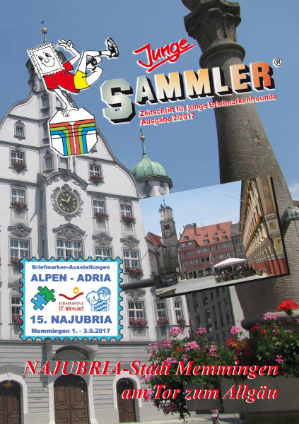 Die NAJUBRIA 2017 in Memmingen steht im Mittelpunkt des neuen Jungen Sammlers Der neue Junge Sammler geht im Juni in den Postversand. Das Heft lädt zu Besuchen des Stiftungswettbewerbs und der Deutschen Mannschaftsmeisterschaften in Jülich und der NAJUBRIA 2017 in Memmingen ein.