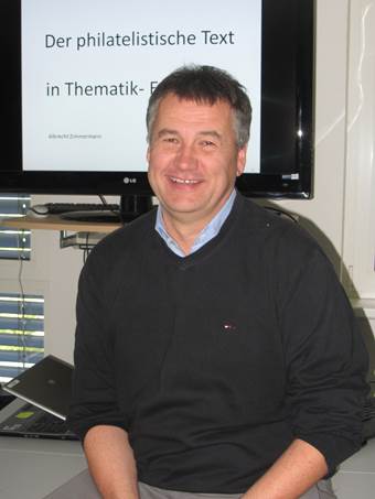 Thematikexperte Albrecht Zimmermann referierte anhand von exquisiten Beispielen aus seinen Exponaten „Kinder“ und „Pfadfinder“ über den philatelistischen Text in Thematik-Exponaten, dessen Notwendigkeit und Umfang.